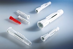 - Gypsum plasterboard plugs made of highly shockproof plastic